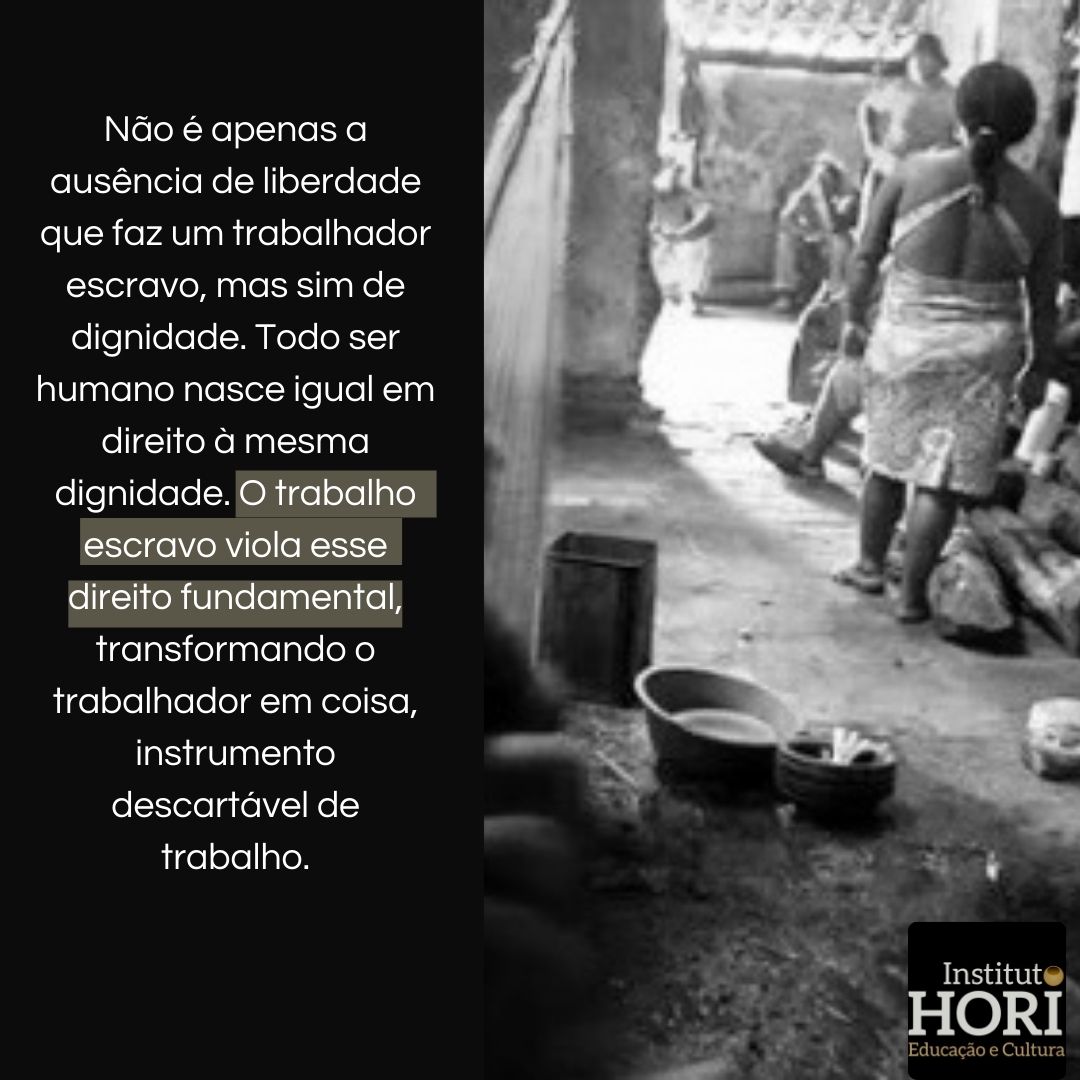 Não é apenas a ausência de liberdade que faz um trabalhador escravo, mas sim de dignidade. Todo ser humano nasce igual em direito à mesma dignidade. O trabalho escravo viola esse direito fundamental, transformando o trabalhador em coisa, instrumento descartável de trabalho.