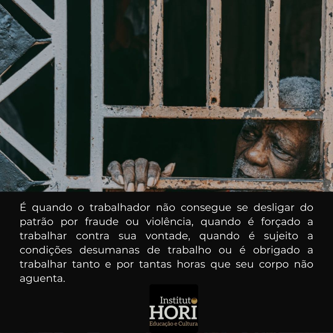 É quando o trabalhador não consegue se desligar do patrão por fraude ou violência, quando é forçado a trabalhar contra sua vontade, quando é sujeito a condições desumanas de trabalho ou é obrigado a trabalhar tanto e por tantas horas que seu corpo não aguenta.