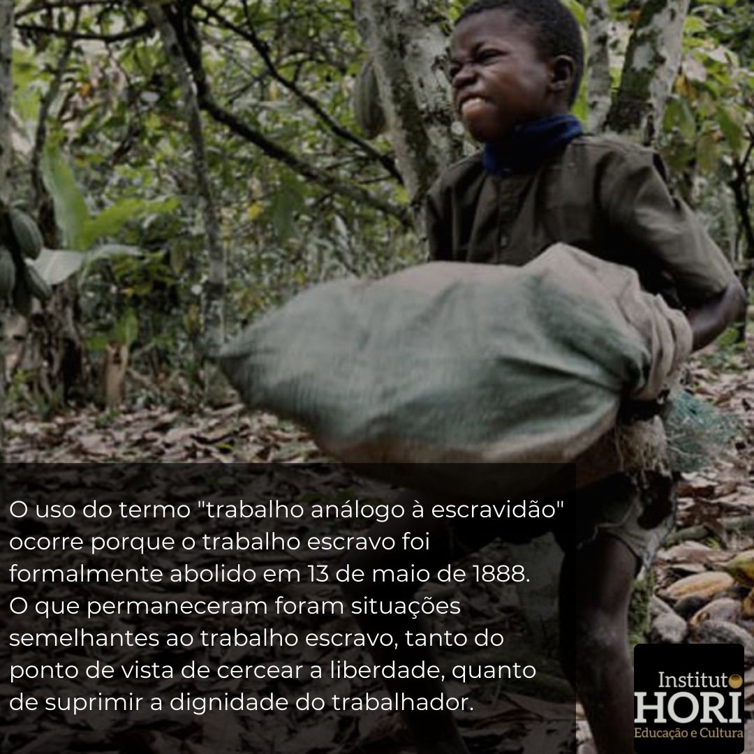O uso do termo “trabalho análogo à escravidão” ocorre porque o trabalho escravo foi formalmente abolido em 13 de maio de 1888. O que permaneceram foram situações semelhantes ao trabalho escravo, tanto do ponto de vista de cercear a liberdade, quanto de suprimir a dignidade do trabalhador.
