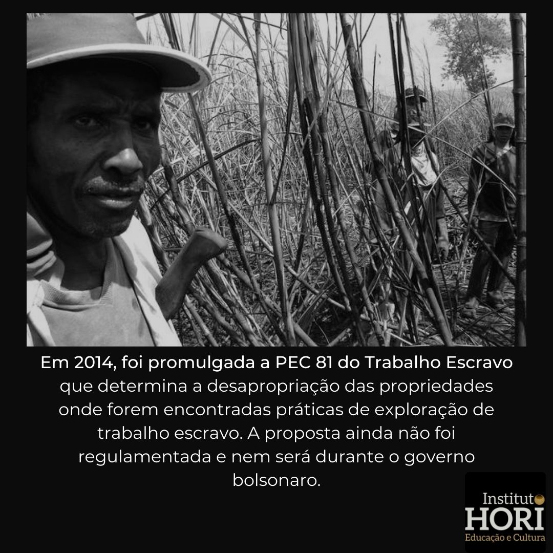 Em 2014, foi promulgada a PEC 81 do Trabalho Escravo, que determina a desapropriação das propriedades onde forem encontradas práticas de exploração de trabalho escravo. A proposta ainda não foi regulamentada e nem será durante o governo bolsonaro.